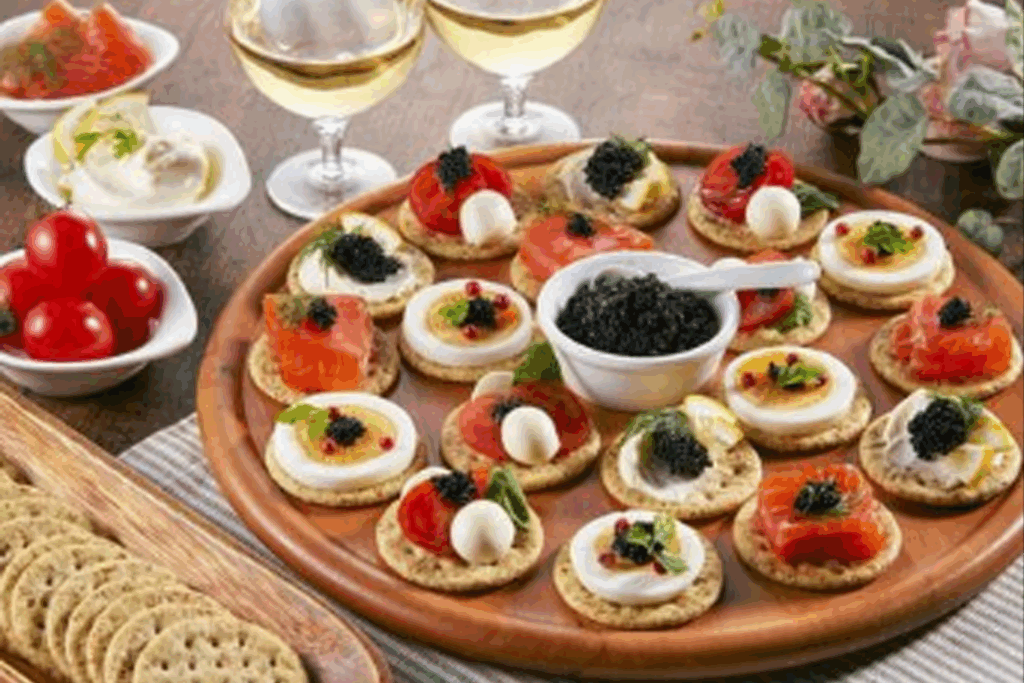 - 季節の一口前菜 例:柿と生ハムのピンチョス/トマトのコンソメジュレ